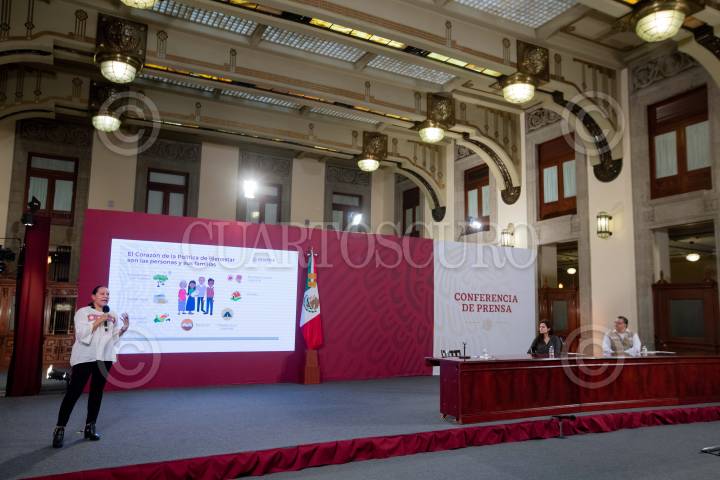 CIUDAD DE MÉXICO, 06JULIO2020.- Luisa María Alcalde Luján, secretaria del Trabajo y Previsión Social; María Luisa Albores González, secretaria de Bienestar, y Gabriel García Hernández, coordinador general de Programas para el Desarrollo de la Presidencia de la República, durante la conferencia de los programas del Bienestar en Palacio Nacional. FOTO: PRESIDENCIA/CUARTOSCURO.COM