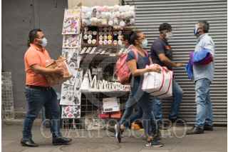 CIUDAD DE MÉXICO. 07JULIO2020.- Miles de Capitalinos, acudieron al centro a realizar sus compras. El cierre de las estaciones Zócalo y Allende, así como la Merced no impidieron que fueran al primer cuadro de la Ciudad. FOTO: VICTORIA VALTIERRA/CUARTOSCURO.COM