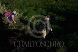 MORELIA, MICHOACÁN, 07JULIO2020.- Una pista alertó a una familia integrante del colectivo ¿Dónde están los desaparecidos? lo que motivo una búsqueda de restos humanos en la zona norte de la ciudad, por el lindero del Rio Grande. Desde temprana hora comenzó la actividad y junto a la Comisión de Búsqueda de Personas Michoacán, la Policía Municipal y la Policía Michoacán, peinaron la zona y el lindero del río, por debajo y por arriba, así como los lotes baldíos y algunas propiedades desde afuera. Con ayuda de palas y varas, así como de un perro del agrupamiento K9 de la policía estatal, se revisaron montículos de tierra y ropa abandonada. FOTO: JUAN JOSÉ ESTRADA SERAFÍN /CUARTOSCURO.COM