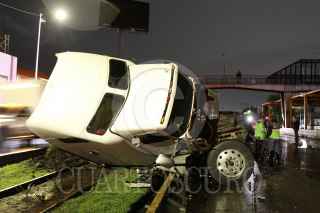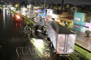 Ciudad de México, 08 julio 2020. Un tráiler cargado con 20 toneladas de cebolla chocó con la base de un puente peatonal, sobre el Circuito Interior y la calle Norte 58 de la colonia 7 de noviembre, en la alcaldía Gustavo A. Madero. Foto: Luis Carbayo/cuartoscuro.com