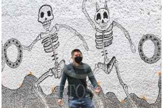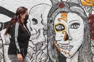 CIUDAD DE MEXICO, 08JULIO2020.- La colonia de San Bernabé Ocotepec en la alcaldia Magdalena Contreras, se encuentra en el número 13 de 20 de las colonias con más casos de contagios por COVID-19, esto según Claudia Sheinbaum, jefa de gobierno de la ciudad. En imagen, aspectos de personas que transitan por dicha colonia de manera cotidiana, entre murales alusivos a la muerte. FOTO: ROGELIO MORALES /CUARTOSCURO.COM