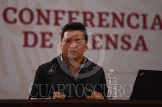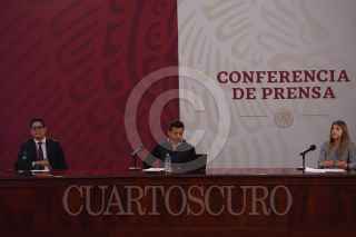 CIUDAD DE MÉXICO, 07JULIO2020.- En ausencia de Graciela Márquez Colín, Secretaria de Economía, debido a su participación en la gira presidencial a Washington, Alejandro Rosas Guerrero, jefe de la Unidad de Prospectiva, Planeación y Evaluación de la Secretaría de Economía, presidió la conferencia de prensa sobre economía en Palacio Nacional, en la cual estuvieron presentes también Omar Mejía Castelazo, subtesorero de la Federación y Nancy Brenda Zayola, directora general comercial adjunta del Fonacot. FOTO: PEDRO ANZA/CUARTOSCURO.COM