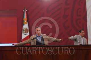 CIUDAD DE MÉXICO, 08JULIO2020.- Conferencia de prensa que ofrece todas las noches en Palacio Nacional el Subsecretario de Prevención y Promoción de la Salud, Hugo López-Gatell Ramírez, sobre la situación que se vive en México ante la emergencia sanitaria. Participaron también en el evento Jose Luis Alomía Zegarra, director general de Epidemiología, Ricardo Cortés Alcalá, director general de promoción de la Salud y Mauricio Hernández Ávila, director de Prestaciones Económicas y Sociales del Instituto Mexicano del Seguro Social. FOTO: PEDRO ANZA /CUARTOSCURO.COM
