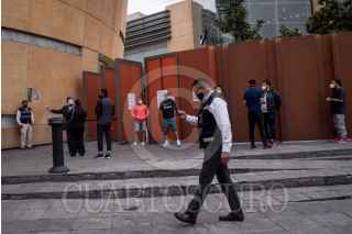 CIUDAD DE MÉXICO, 09JULIO2020.- Consumidores y trabajadores hacen flas a las afueras de diversos centros comerciales de la ciudad, antes de ingresar al inmueble atraviesan filtros sanitarios en donde se les toma la temperatura y se les aplica gel antibacterial en las manos. FOTO: PEDRO ANZA/CUARTOSCURO.COM