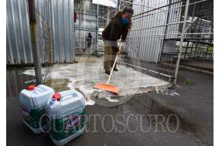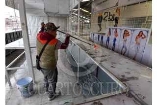 Comerciantes realizan labores de limpieza a un día de la reapertura del Tianguis Aviación Autopan el cual, se deberá respetar las medidas sanitarias así como solo se tendrá un aforo del 30 por ciento para comerciantes y usuarios, solo podrá ingresar una persona por familia, y el acceso a niños y personas de la tercera edad será restringido, de no cumplirse las normas de higiene ante la contingencia por COVID-19 el mercado podría ser suspendido. FOTO: CRISANTA ESPINOSA AGUILAR /CUARTOSCURO.COM