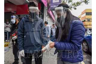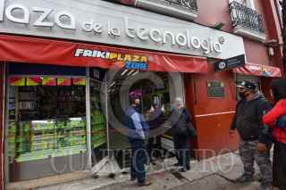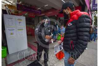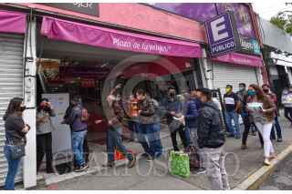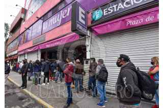 Locatarios de la Plaza de la Tecnología en Toluca regresaron a sus actividades con medidas sanitarias después de permanecer varias semanas cerrada por la contingencia de COVID-19, en el acceso son tomada la temperatura, se da gel antibacterial y se pasa por un tapete sanitizante, algunas compradores hicieron fila para poder ingresar a la plaza. FOTO: CRISANTA ESPINOSA AGUILAR /CUARTOSCURO.COM