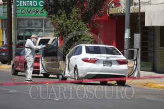 CIUDAD JUÁREZ, CHIHUAHUA, 09JULIO2020.- Una pareja fue asesinada por parte de sujetos armados en la avenida De las Américas afuera del negocio denominado “Los Poyos”. Los hechos sucedieron afuera del local denominado “Los Poyos” en el cruce con la calle Cholula, las víctimas viajaban a bordo de un auto Toyota Yaris color blanco. Ninguno fue identificado hasta el momento, se desconocen las causas del ataque en su contra. La zona fue acordonada para realizar las investigaciones correspondientes, trasladar al lesionado y realizar el levantamiento del cuerpo de la mujer. FOTO: NACHO RUIZ/CUARTOSCURO.COM