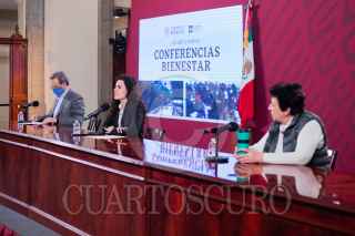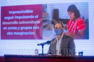 CIUDAD DE MÉXICO, 09JULIO2020.- Esteban Moctezuma Barragán, secretario de Educación Pública; Luisa María Alcalde Luján, secretaria del Trabajo y Previsión Social, y Raquel Sosa Elízaga, directora general del Organismo Coordinador de las Universidades para el Bienestar "Benito Juárez García", durante las Conferencias Bienestar en Palacio Nacional. FOTO: PRESIDENCIA/CUARTOSCURO.COM