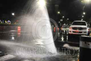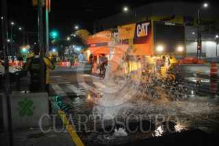 Ciudad de México, 10 julio 2020. Fuerte fuga de agua potable en el cruce de Eje Central y Eje 3 Sur Baja California en la colonia Buenos Aires, provocada por trabajadores que realizaban la repavimentación de esta última vialidad, dejando que miles de litros fueran a parar al drenaje. Foto: Luis Carbayo/cuartoscuro.com