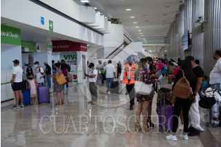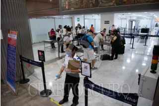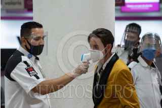 CIUDAD DE MÉXICO, 10JULIO2020.- Protocolos de sanidad se implementan en los pasillos de la Terminal 1 del Aeropuerto Internacional de la Ciudad de México (AICM) como prevención del riesgo de contagio de covid-19 en las instalaciones mientras permanece activo el semáforo naranja epidemiológico. FOTO: MARIO JASSO /CUARTOSCURO.COM
