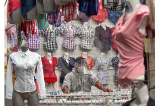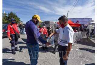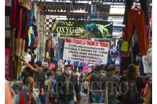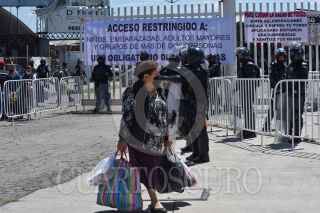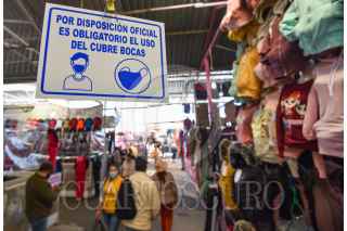 El Tianguis Aviación Autopán reactivó su actividad después de varias semanas de permanecer cerrado por la contingencia de COVID-19, la afluencia fue del 30 por ciento y el acceso a personas de la tercera edad y niños fue restringido, así como se tomó la temperatura y se dio gel antibacterial, se colocaron mantas en todo el lugar en donde piden se sigan las medidas sanitarias para evitar contagios. FOTO: CRISANTA ESPINOSA AGUILAR /CUARTOSCURO.COM