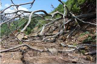 SAN JOSÉ OZOLOTEPEC, OAXACA, 11JULIO2020.- El camino que conecta a esta comunidad aún se encuentra bloqueado por ramas y piedras, lo que dificulta el acceso y por ende cualquier tipo de ayuda. Esta comunidad esta habitada por unas 60 familias. Cinco casas se destruyeron totalmente por el sismo del 23 de junio pasado, y otras 15 están dañadas, mismas que se han ido deteriorando por la lluvia y las constantes réplicas del temblor. Las familias aún están atemorizadas de que otro sismo les pueda arrebatar lo poco que les queda. FOTO: TOMÁS ACOSTA/CUARTOSCURO.COM
