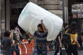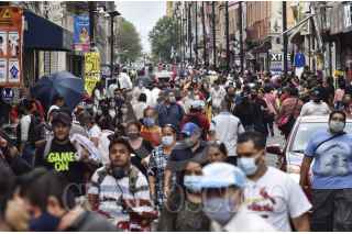 CIUDAD DE MÉXICO, 11JULIO2020.- Cientos de personas aglomeraron este sábado las principales calles del centro histórico día en que el semáforo epidemiológico por covid-19 se suspendió temporalmente por parte de las autoridades. La cifra de casos hasta ayer registraron: 289,174 casos confirmados; 81,838 casos sospechosos y 34,191 defunciones por covid-19. FOTO: MARIO JASSO /CUARTOCURO.COM