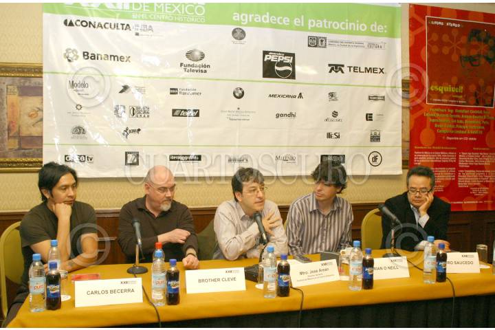 MÉXICO D.F. 31MARZO2006.- Brother Cleve, José Areán y Brian O Neill, durante conferencia para la próxima presentación del Homenaje a Juan García Esquivel, el Rey del Launge, dentro del XXII Festival del Centro Histórico. FOTO: Diego Gallegos/CUARTOSCURO.COM
