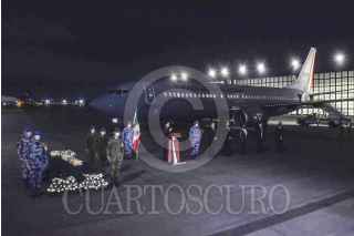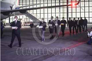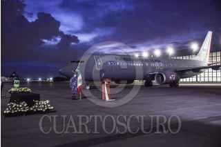 CIUDAD DE MÉXICO, 11JULIO2020.- Una aeronave de la Fuerza Aérea Mexicana llegó esta noche al Aeropuerto Internacional de la Ciudad de México (AICM) con 250 cenizas repatriadas de mexicanos que fallecieron por coronavirus (covid-19) en Estados Unidos de America. FOTO: MARIO JASSO /CUARTOSCURO.COM