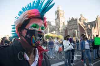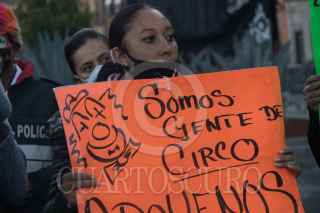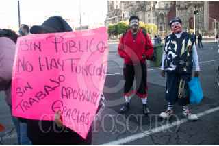 CIUDAD DE MÉXICO. 13JULIO2020.-Cirqueros, payasos y artistas callejeros se manifestaron, frente a Palacio Nacional, en demanda de apoyos economicos debido a la falta de trabajo por la pandemia de Covid 19. FOTO: VICTORIA VALTIERRA/CUARTOSCURO.COM