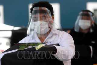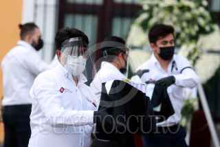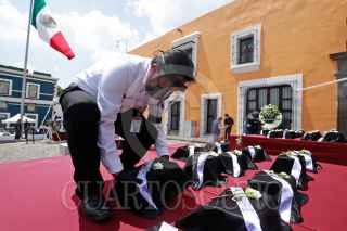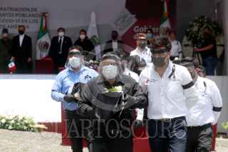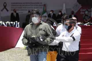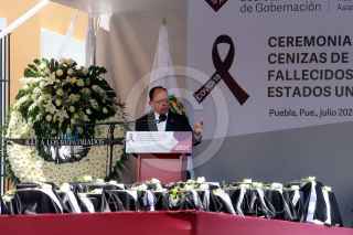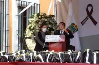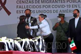 PUEBLA, PUEBLA, 13JULIO2020.- El gobernador del estado, Miguel Barbosa Huerta, y el cónsul general de México en Nueva York, Jorge Islas, encabezaron la ceremonia de repatriación de cenizas de migrantes poblanos fallecidos por Covid-19 en los Estados Unidos de América. FOTO: MIREYA NOVO/CUARTOSCURO.COM