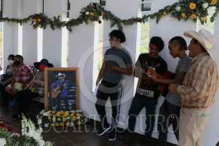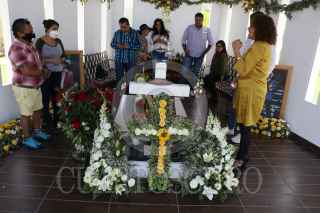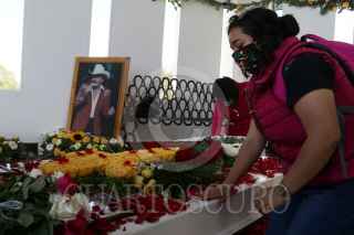 TAXCO DE ALARCÓN, GUERRERO, 13JULIO2020.- Hermanos, familiares cercanos y seguidores del cantautor Joan Sebastian; se reunieron en la cripta donde se encuentra sepultado para conmemorar el quinto aniversario de su muerte. Decenas de personas llegaron con flores, algunos jóvenes entonaron algunas canciones del también conocido como el "Rey del jaripeo". Debido a la contingencia sanitaria por el Covid-19 el ingreso a la tumba fue limitado y con uso de cubrebocas. FOTO: MARGARITO PÉREZ RETANA/CUARTOSCURO.COM