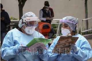 CIUDAD DE MEXICO, 14JULIO2020.- Personal médico del Hospital Enrique Cabrera, mantienen atención prioritaria de ingreso a personas con síntomas por COVID-19 o casos confirmados. Cabe destacar que el pasado lunes la cifra de muertes por coronavirus se elevó a 35 mil 491 pedidas fallecidas. FOTO: ROGELIO MORALES /CUARTOSCURO.COM