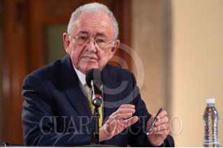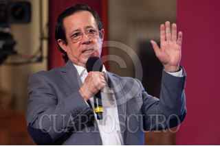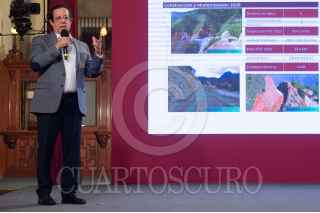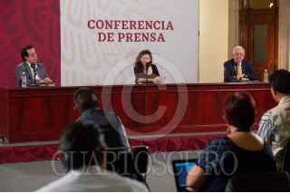 CIUDAD DE MÉXICO, 14JULIO2020.- Francisco Raúl Chavoya Cárdenas, director general de Carreteras Federales; Luisa María Alcalde Luján, secretaria del Trabajo y Previsión Social, y Javier Jiménez Espriú, secretario de Comunicaciones y Obras Públicas, durante la conferencia del Bienestar en Palacio Nacional. FOTO: PRESIDENCIA/CUARTOSCURO.COM
