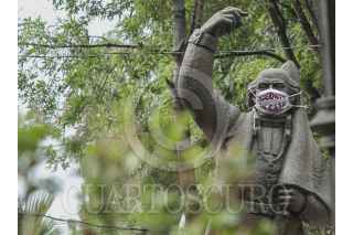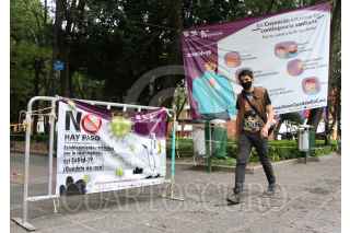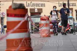 CIUDAD DE MEXICO, 14JULIO2020.- Con el objetivo de reforzar las medidas para evitar la propagación de COVID-19, autoridades Coyoacan, mantienen cerrada al público el Jardín Hidalgo ubicado en el centro de esta alcaldía, con bandas de precaución y vigilancia de la policía auxiliar los visitantes se mantienen en la periferia de la plaza. FOTO: ROGELIO MORALES /CUARTOSCURO.COM