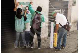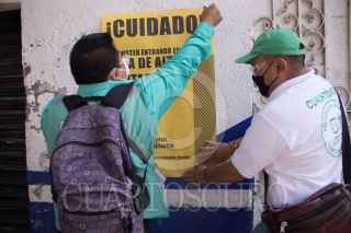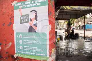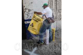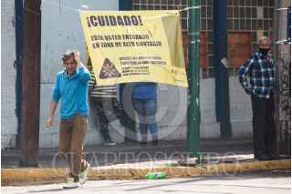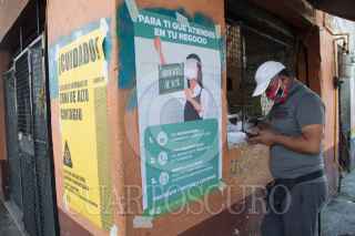 CIUDAD DE MÉXICO. 15JULIO2020.- Trabajadores del Gobierno de la Ciudad, saturan de anuncios sobre el Covid, en la colonia de los Doctores, calles Adrade y Antonio de los Santos. Medidas extremas en negocios de esta misma colonia, debido a que este barrio de la alcaldía de Cuauhtémoc, son las que cuentan con más casos de Covid 19. FOTO: VICTORIA VALTIERRA/CUARTOSCURO.COM