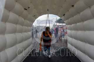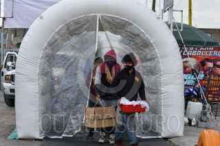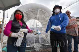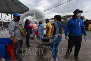 Con medidas higiénicas reabrió el Gran Bazar Toluca, mejor conoció como “El Piojo” en donde fueron instalados arcos y túneles sanitizantes en sus cuatro entradas, así como es tomada la temperatura y se les da gel a cada unos de los clientes que ingresan al lugar, un mercado al que acuden cientos de personas tuvo que bajar su afluencia al igual que en otros lugares para poder prevenir contagios por COVID-19. FOTO: CRISANTA ESPINOSA AGUILAR /CUARTOSCURO.COM
