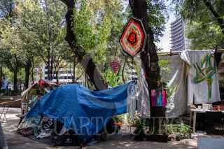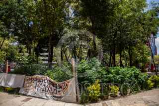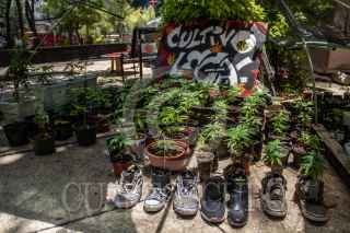CIUDAD DE MÉXICO, 15JULIO2020.- El plantón 420 ubicado en la plaza Luis Pasteur se mantiene para cuidar las plantas de Cannabis que se cultivan ahí y que han crecido hasta el metro treinta de altura en diferentes puntos del lugar. Desde el mes de enero se instalo sembrando por primera vez 8 plantas de cannabis frente al Senado de la República en espera de la votación de la ley cannabis la cual hasta la fecha se sigue posponiendo en la Cámara. El plantón cuenta con más de 300 plantas vivas en el suelo y cientos más creciendo. Se limpiaron las jardineras y se plantó un huerto, se instaló un zona de composteo, según declaración de los voluntarios del lugar. La alcaldía colocó vallas para evitar aglomeraciones y los voluntarios permiten el acceso por máximo 30 minutos por persona para consumo de marihuana en el lugar. No venden ninguna planta o menudeo de estas, tampoco se permite el consumo de otra droga dentro. FOTO: ANDREA MURCIA/CUARTOSCURO.COM