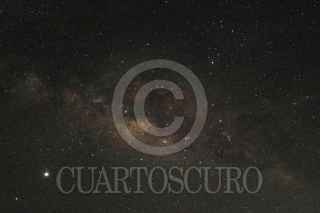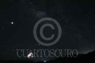 ATENANGO DEL RÍO, GUERRERO, 16JULIO2020.- La vía láctea se extiende majestuosa arriba, abajo una tormenta eléctrica y luciérnagas con luz verde iluminan el camino a la comunidad de San Juan Teocalcingo, en la sierra guerrerense. A la izquierda los planetas Venus y Marte. FOTO: MARGARITO PÉREZ RETANA /CUARTOSCURO.COM