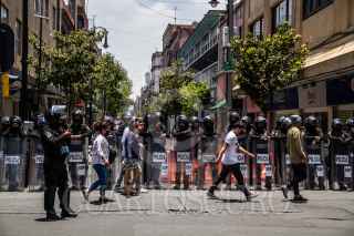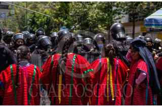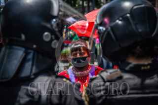 CIUDAD DE MÉXICO, 16JULIO2020.- La organización de Pueblos Artesanos Indigenas se manifestaron en el cruce de la Avenida Izazaga y Pino Suarez para exigir apoyo económico al Gobierno de la Ciudad. Elementos de seguridad rodearon las calles para evitar que los manifestantes recorrieran las calles. FOTO: ANDREA MURCIA/CUARTOSCURO.COM