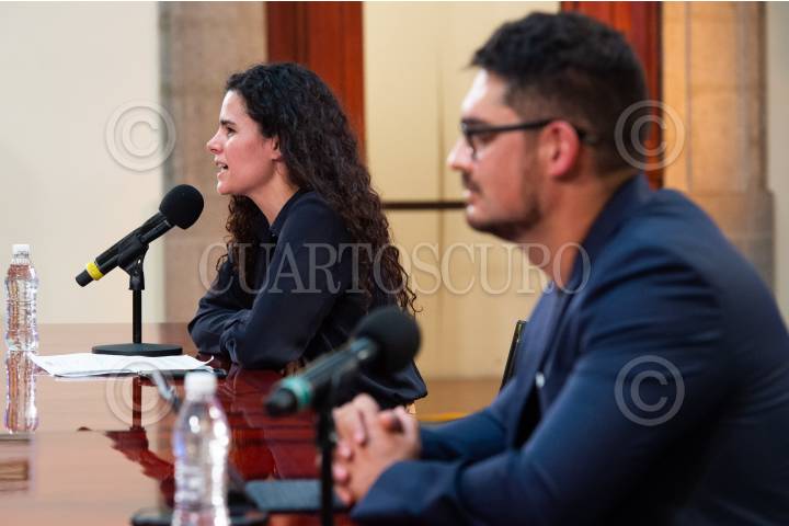 CIUDAD DE MÉXICO, 16JULIO02020.- Luisa María Alcalde Luján, secretaria del Trabajo y Previsión Social, y Román Meyer Falcón, secretario de Desarrollo Agrario, Territorial y Urbano, durante las Conferencias del Bienestar en Palacio Nacional. FOTO: PRESIDENCIA/CUARTOSCURO.COM