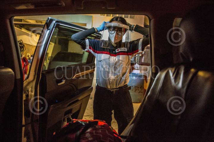 TIJUANA, BAJA CALIFORNIA, 17ABRIL2020.- Al ser los primeros respondientes en llamadas de emergencia por cuestiones de salud, el personal médico de la Cruz Roja se encuentra en la primera línea de batalla durante la actual pandemia del Covid-19, virus con el que se han contagiado 3 mil 160 personas y el cual ha matado a 941 personas en la ciudad fronteriza. Fue a principios de marzo cuando la institución comenzó a recibir llamadas de auxilio por personas con síntomas de coronavirus, con el paso de las semanas han llegado a atender a un promedio de 40 pacientes diarios, quienes presentaban fiebre, falta de aire, tos seca y dolores musculares. Las llamadas de emergencia se registran a todas horas del día, el personal encargado de recibirlas comunica el reporte con prontitud a los paramédicos, haciéndoles hincapié en las medidas de protección que deben tomar para evitar que contraigan el virus. Para ello, la institución asignó ambulancias y personal especializado para atender exclusivamente casos de personas sospechosas de Covid-19, una vez que llegan al domicilio, los paramédicos de Cruz Roja evalúan al paciente para saber qué tipo de atención requiere; se le toma la temperatura y se revisan los niveles de oxígeno en la sangre, en caso de ser necesario el traslado se realiza un protocolo de seguridad para llevar al paciente a uno de los hospitales Covid que fueron habilitados en Tijuana. A mediados de abril los hospitales de la ciudad fronteriza estuvieron prácticamente rebasados por la alta demanda de atención de pacientes con síntomas, lo que causó que los socorristas tuvieran que realizar recorridos por los diversos nosocomios para lograr encontrar algún hospital donde los pacientes pudieran recibir atención en las áreas de urgencias, muchos de ellos no lograron resistir más y murieron a bordo de las ambulancias esperando atención. Durante la pandemia derivada del Covid-19 han resultado infectados una gran cantidad de médicos, personal de enfermería, y socorristas pertenecientes a hospitales públicos y de la Cruz Roja, por lo que la benemérita institución tuvo que habilitar su propio hospital para atenderlos y contribuir a la salud de quienes están a cargo de brindar los cuidados necesarios a los pacientes. A la fecha han sido atendidos 106 profesionales de la salud en la Cruz Roja, de los cuales 42 corresponden a la propia institución, entre quienes hay médicos, enfermeras y enfermeros, socorristas, así como de sus diversas áreas Dentro del hospital de la Cruz Roja se manejan “áreas limpias” y “áreas sucias”, en las cuales el personal médico que está en contacto con pacientes contagiados debe seguir los protocolos sanitarios al pie de la letra para evitar contraer el virus, fueron capacitados mediante videos informativos sobre el procedimiento para ponerse el traje de protección, los guantes, las caretas y los cubre bocas, así como el proceso para quitárselos y cómo desecharlos con seguridad. El personal médico asignado a la Unidad de Cuidados Intensivos (UCI) atiende durante jornadas de trabajo dobles y sin descanso a los pacientes contagiados, aunado a los llamados de auxilio que se dan todos los días por accidentes y personas que sufren de otras enfermedades, quienes también necesitan atención y deben ser tratados con la misma urgencia. La heroica labor del personal de la institución implica un gran riesgo para su salud y la de sus familias, es por eso que muchos de ellos han tenido que alejarse de sus hijos y parejas, algunos han optado por pasar las noches en cuartos de hotel, o en casas rentadas para no exponer a sus seres queridos. La unidad de pacientes Covid está compuesta por un equipo de médicos y personal de enfermería especializado en medicina intensiva, el acceso seguro al espacio se realiza bajo rigurosas medidas sanitarias, en todo momento los médicos revisan la evolución de la enfermedad en los pacientes, parte de la labor de enfermeras y enfermeros está enfocada en proporcionarles los medicamentos, apoyar con el aseo personal de los pacientes y orientarlos en los ejercicios de respiración que se pueden realizar para reforzar sus pulmones. En el lugar se trabaja al límite, el único sonido que impera es el ocasionado por el equipo médico. FOTO: OMAR MARTÍNEZ/CUARTOSCURO.COM