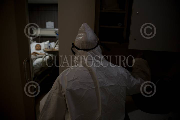 TIJUANA, BAJA CALIFORNIA, 17ABRIL2020.- Al ser los primeros respondientes en llamadas de emergencia por cuestiones de salud, el personal médico de la Cruz Roja se encuentra en la primera línea de batalla durante la actual pandemia del Covid-19, virus con el que se han contagiado 3 mil 160 personas y el cual ha matado a 941 personas en la ciudad fronteriza. Fue a principios de marzo cuando la institución comenzó a recibir llamadas de auxilio por personas con síntomas de coronavirus, con el paso de las semanas han llegado a atender a un promedio de 40 pacientes diarios, quienes presentaban fiebre, falta de aire, tos seca y dolores musculares. Las llamadas de emergencia se registran a todas horas del día, el personal encargado de recibirlas comunica el reporte con prontitud a los paramédicos, haciéndoles hincapié en las medidas de protección que deben tomar para evitar que contraigan el virus. Para ello, la institución asignó ambulancias y personal especializado para atender exclusivamente casos de personas sospechosas de Covid-19, una vez que llegan al domicilio, los paramédicos de Cruz Roja evalúan al paciente para saber qué tipo de atención requiere; se le toma la temperatura y se revisan los niveles de oxígeno en la sangre, en caso de ser necesario el traslado se realiza un protocolo de seguridad para llevar al paciente a uno de los hospitales Covid que fueron habilitados en Tijuana. A mediados de abril los hospitales de la ciudad fronteriza estuvieron prácticamente rebasados por la alta demanda de atención de pacientes con síntomas, lo que causó que los socorristas tuvieran que realizar recorridos por los diversos nosocomios para lograr encontrar algún hospital donde los pacientes pudieran recibir atención en las áreas de urgencias, muchos de ellos no lograron resistir más y murieron a bordo de las ambulancias esperando atención. Durante la pandemia derivada del Covid-19 han resultado infectados una gran cantidad de médicos, personal de enfermería, y socorristas pertenecientes a hospitales públicos y de la Cruz Roja, por lo que la benemérita institución tuvo que habilitar su propio hospital para atenderlos y contribuir a la salud de quienes están a cargo de brindar los cuidados necesarios a los pacientes. A la fecha han sido atendidos 106 profesionales de la salud en la Cruz Roja, de los cuales 42 corresponden a la propia institución, entre quienes hay médicos, enfermeras y enfermeros, socorristas, así como de sus diversas áreas Dentro del hospital de la Cruz Roja se manejan “áreas limpias” y “áreas sucias”, en las cuales el personal médico que está en contacto con pacientes contagiados debe seguir los protocolos sanitarios al pie de la letra para evitar contraer el virus, fueron capacitados mediante videos informativos sobre el procedimiento para ponerse el traje de protección, los guantes, las caretas y los cubre bocas, así como el proceso para quitárselos y cómo desecharlos con seguridad. El personal médico asignado a la Unidad de Cuidados Intensivos (UCI) atiende durante jornadas de trabajo dobles y sin descanso a los pacientes contagiados, aunado a los llamados de auxilio que se dan todos los días por accidentes y personas que sufren de otras enfermedades, quienes también necesitan atención y deben ser tratados con la misma urgencia. La heroica labor del personal de la institución implica un gran riesgo para su salud y la de sus familias, es por eso que muchos de ellos han tenido que alejarse de sus hijos y parejas, algunos han optado por pasar las noches en cuartos de hotel, o en casas rentadas para no exponer a sus seres queridos. La unidad de pacientes Covid está compuesta por un equipo de médicos y personal de enfermería especializado en medicina intensiva, el acceso seguro al espacio se realiza bajo rigurosas medidas sanitarias, en todo momento los médicos revisan la evolución de la enfermedad en los pacientes, parte de la labor de enfermeras y enfermeros está enfocada en proporcionarles los medicamentos, apoyar con el aseo personal de los pacientes y orientarlos en los ejercicios de respiración que se pueden realizar para reforzar sus pulmones. En el lugar se trabaja al límite, el único sonido que impera es el ocasionado por el equipo médico. FOTO: OMAR MARTÍNEZ/CUARTOSCURO.COM