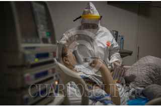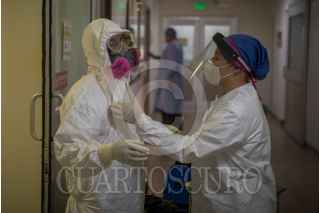 TIJUANA, BAJA CALIFORNIA, 17ABRIL2020.- Al ser los primeros respondientes en llamadas de emergencia por cuestiones de salud, el personal médico de la Cruz Roja se encuentra en la primera línea de batalla durante la actual pandemia del Covid-19, virus con el que se han contagiado 3 mil 160 personas y el cual ha matado a 941 personas en la ciudad fronteriza. Fue a principios de marzo cuando la institución comenzó a recibir llamadas de auxilio por personas con síntomas de coronavirus, con el paso de las semanas han llegado a atender a un promedio de 40 pacientes diarios, quienes presentaban fiebre, falta de aire, tos seca y dolores musculares. Las llamadas de emergencia se registran a todas horas del día, el personal encargado de recibirlas comunica el reporte con prontitud a los paramédicos, haciéndoles hincapié en las medidas de protección que deben tomar para evitar que contraigan el virus. Para ello, la institución asignó ambulancias y personal especializado para atender exclusivamente casos de personas sospechosas de Covid-19, una vez que llegan al domicilio, los paramédicos de Cruz Roja evalúan al paciente para saber qué tipo de atención requiere; se le toma la temperatura y se revisan los niveles de oxígeno en la sangre, en caso de ser necesario el traslado se realiza un protocolo de seguridad para llevar al paciente a uno de los hospitales Covid que fueron habilitados en Tijuana. A mediados de abril los hospitales de la ciudad fronteriza estuvieron prácticamente rebasados por la alta demanda de atención de pacientes con síntomas, lo que causó que los socorristas tuvieran que realizar recorridos por los diversos nosocomios para lograr encontrar algún hospital donde los pacientes pudieran recibir atención en las áreas de urgencias, muchos de ellos no lograron resistir más y murieron a bordo de las ambulancias esperando atención. Durante la pandemia derivada del Covid-19 han resultado infectados una gran cantidad de médicos, personal de enfermería, y socorristas pertenecientes a hospitales públicos y de la Cruz Roja, por lo que la benemérita institución tuvo que habilitar su propio hospital para atenderlos y contribuir a la salud de quienes están a cargo de brindar los cuidados necesarios a los pacientes. A la fecha han sido atendidos 106 profesionales de la salud en la Cruz Roja, de los cuales 42 corresponden a la propia institución, entre quienes hay médicos, enfermeras y enfermeros, socorristas, así como de sus diversas áreas Dentro del hospital de la Cruz Roja se manejan “áreas limpias” y “áreas sucias”, en las cuales el personal médico que está en contacto con pacientes contagiados debe seguir los protocolos sanitarios al pie de la letra para evitar contraer el virus, fueron capacitados mediante videos informativos sobre el procedimiento para ponerse el traje de protección, los guantes, las caretas y los cubre bocas, así como el proceso para quitárselos y cómo desecharlos con seguridad. El personal médico asignado a la Unidad de Cuidados Intensivos (UCI) atiende durante jornadas de trabajo dobles y sin descanso a los pacientes contagiados, aunado a los llamados de auxilio que se dan todos los días por accidentes y personas que sufren de otras enfermedades, quienes también necesitan atención y deben ser tratados con la misma urgencia. La heroica labor del personal de la institución implica un gran riesgo para su salud y la de sus familias, es por eso que muchos de ellos han tenido que alejarse de sus hijos y parejas, algunos han optado por pasar las noches en cuartos de hotel, o en casas rentadas para no exponer a sus seres queridos. La unidad de pacientes Covid está compuesta por un equipo de médicos y personal de enfermería especializado en medicina intensiva, el acceso seguro al espacio se realiza bajo rigurosas medidas sanitarias, en todo momento los médicos revisan la evolución de la enfermedad en los pacientes, parte de la labor de enfermeras y enfermeros está enfocada en proporcionarles los medicamentos, apoyar con el aseo personal de los pacientes y orientarlos en los ejercicios de respiración que se pueden realizar para reforzar sus pulmones. En el lugar se trabaja al límite, el único sonido que impera es el ocasionado por el equipo médico. FOTO: OMAR MARTÍNEZ/CUARTOSCURO.COM