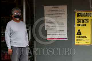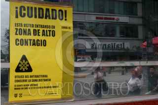 CIUDAD DE MÉXICO, 17JULIO2020.- Carteles con la leyenda "Zona de Alto Contagio" fueron instalados en las colonias que volvieron al semáforo rojo debido al alto número de contagios por Covid-19. FOTO: GALO CAÑAS /CUARTOSCURO.COM