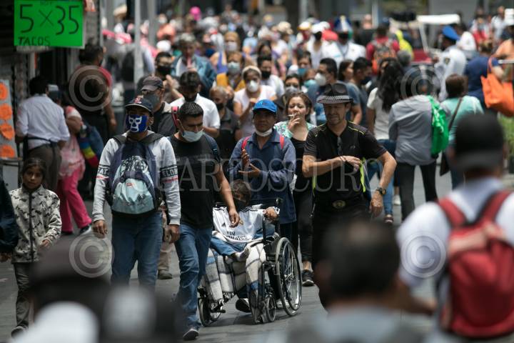 CIUDAD DE MÉXICO, 18JULIO2020.- 34 colonias de la capital del país cambiaron a semáforo rojo, en relación al color naranja que predomina en la entidad, debido al alto número de contagios por Covid-19. A pesar de ello, y de las nuevas medidas para reducir aglomeraciones y movilidad en el primer cuadro, cientos de capitalinos continúan acudiendo al centro histórico ya sea para la compra de artículos al mayoreo, o bien, un paseo con la familia. FOTO: GALO CAÑAS /CUARTOSCURO.COM