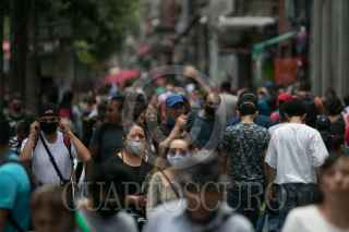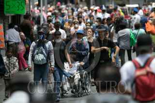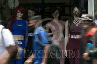 CIUDAD DE MÉXICO, 18JULIO2020.- 34 colonias de la capital del país cambiaron a semáforo rojo, en relación al color naranja que predomina en la entidad, debido al alto número de contagios por Covid-19. A pesar de ello, y de las nuevas medidas para reducir aglomeraciones y movilidad en el primer cuadro, cientos de capitalinos continúan acudiendo al centro histórico ya sea para la compra de artículos al mayoreo, o bien, un paseo con la familia. FOTO: GALO CAÑAS /CUARTOSCURO.COM