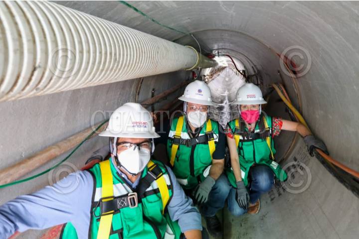 CIUDAD DE MÉXICO, 18JULIO2020.- Claudia Sheinbaum, jefa de Gobierno de la ciudad de México, junto con Francisco Chíguil, alcalde de Gustavo A. Madero, y Julio César Moreno, alcalde de Venustiano Carranza, así como de Santiago Maldonado, director general de drenaje del Sistema de Aguas de la Ciudad de México, realizaron un recorrido por los trabajos del el Colector Tahelque, el cual beneficiará aproximadamente a 50 habitantes de las colonias en Gustavo A. Madero y Venustiano Carranza. FOTO: ESPECIAL /CUARTOSCURO.COM