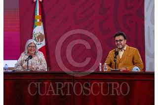 CIUDAD DE MÉXICO, 18JULIO2020.- Graciela Márquez Colin, secretaria de Economía y Sergio Silva Castañeda, titula de la Unidad de Inteligencia Económica Global (SE) durante la conferencia Créditos que se lleva a cabo en el Palacio Nacional. FOTO: ANDREA MURCIA/CUARTOSCURO.COM