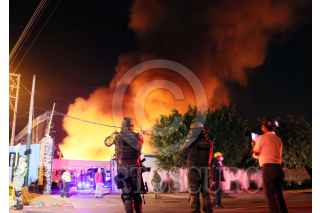 JIUTEPEC, MORELOS, 19JULIO2020.- Un incendio redujo a cenizas la fábrica de cosméticos Lavín ubicada en la calle 9 Este en la Ciudad Industrial del Valle de Cuernavaca (CIVAC). El incendio comenzó minutos antes de la medianoche y movilizo a decenas de equipos de bomberos de varios municipios conurbados. El combate al fuego duro varias horas, algunas fábricas contiguas fueron desalojadas, afortunadamente el humo se elevó de manera vertical y no hubo necesidad de evacuar a los habitantes de la zona. No se reportan decesos ni heridos en este desastre. FOTO: MARGARITO PÉREZ RETANA /CUARTOSCURO.COM