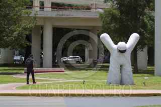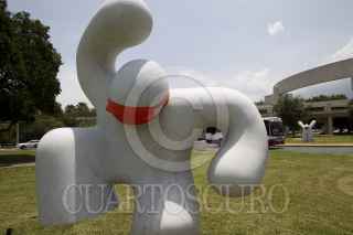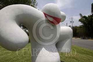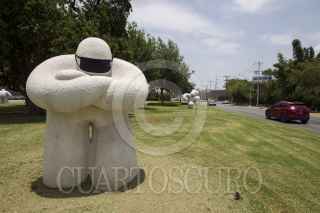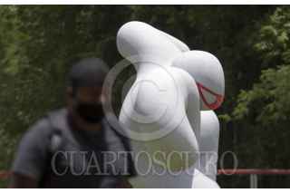SAN PEDRO GARZA GARCÍA, NUEVO LEÓN, 20JULIO2020.- Las esculturas de mármol "Los Gigantes" del artista Daniel Serna, fueron colocadas en el municipio de San Pedro para concientizar a los ciudadanos sobre el uso del cubrebocas ante el incremento de casos por Covid-19 en la entidad. Las obras pesan 40 toneladas cada una. FOTO: GABRIELA PÉREZ MONTIEL / CUARTOSCURO.COM