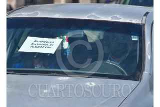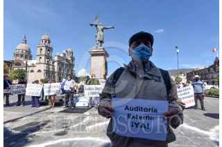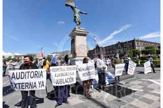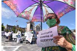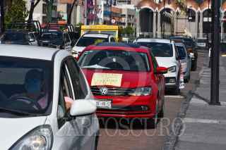 Trabajadores de diversas dependencias estatales derechohabientes del ISSEMYM iniciaron una manifestación en automóviles y posteriormente se plantaron frente a la Camara de Diputados protestando contra las reformas a la Ley ISSEMYM que se analiza en el Congreso Local. FOTO: CRISANTA ESPINOSA AGUILAR /CUARTOSCURO.COM