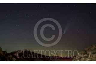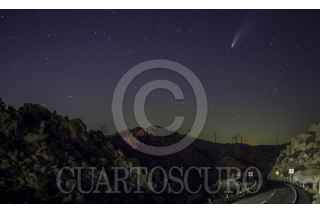 TECATE, BAJA CALIFORNIA, 21JULIO2020.- El Cometa Neowise, visto la noche del lunes desde La Rumorosa. El astro tiene 4.8 kilómetros de diámetro , estará de paso en la Tierra y no regresará en más de 6.000 años. FOTO: OMAR MARTÍNEZ /CUARTOSCURO.COM