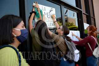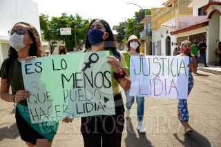 CULIACÁN, SINALOA, 21JULIO2020.- Mujeres marcharon para exigir justicia por Lidia Andreé, joven asesinada en Culiacán. El crimen ocurrió la semana, después de que la joven fue privada de la libertad y hallada carbonizada. Cerca de 50 jóvenes marcharon de la Catedral de Culiacán hasta las instalaciones de la Fiscalía General de Sinaloa para exigir justicia. FOTO: JUAN CARLOS CRUZ/CUARTOSCURO.COM