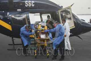 CIUDAD DE MÉXICO, 21JULIO2020.- Un helicóptero del agrupamiento Cóndores de la policía capitalina trasladó, desde la alcaldía Tláhuac, a una menor que sufrió traumatismo craneoencefálico severo a un centro comercial en Azcapotzalco para que una ambulancia la llevara de urgencia al Hospital Infantil de Legaria. FOTO: CRISTIAN HERNÁNDEZ/CUARTOSCURO.COM