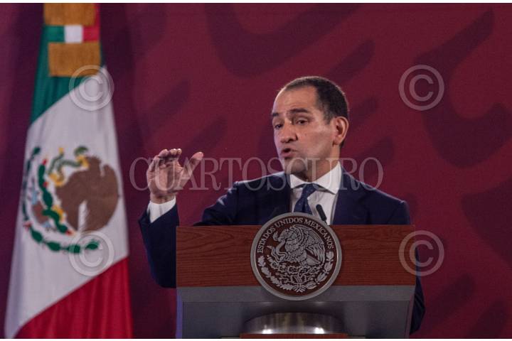 CIUDAD DE MÉXICO, 22JULIO2020.-Andrés Manuel López Obrador, presidente de México acompañado de Arturo Herrera Gutiérrez, secretario de Hacienda y crédito Público; Ricardo Monreal Ávila, presidente de la Junta de Coordinación Política de la Cámara de Senadores; Mario Delgado Carrillo, presidente de la Junta de Coordinación Política de la Cámara de Diputados; Zóe Robledo Aburto, director general del IMSS; Carlos Salazar Lomelín, Presidente del Consejo Coordinador Empresarial; Carlos Aceves del Olmo, secretario general de la Confederación de Trabajadores de México (CTM) y Julio Scherer Ibarra, consejero jurídico de la presidencia, durante la conferencia matutina en el Palacio Nacional. FOTO: ANDREA MURCIA/CUARTOSCURO.COM