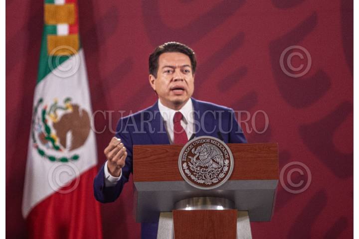 CIUDAD DE MÉXICO, 22JULIO2020.-Andrés Manuel López Obrador, presidente de México acompañado de Arturo Herrera Gutiérrez, secretario de Hacienda y crédito Público; Ricardo Monreal Ávila, presidente de la Junta de Coordinación Política de la Cámara de Senadores; Mario Delgado Carrillo, presidente de la Junta de Coordinación Política de la Cámara de Diputados; Zóe Robledo Aburto, director general del IMSS; Carlos Salazar Lomelín, Presidente del Consejo Coordinador Empresarial; Carlos Aceves del Olmo, secretario general de la Confederación de Trabajadores de México (CTM) y Julio Scherer Ibarra, consejero jurídico de la presidencia, durante la conferencia matutina en el Palacio Nacional. FOTO: ANDREA MURCIA/CUARTOSCURO.COM