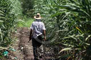 PUENTE DE IXTLA, MORELOS, 22JULIO2020.- Un campesino recorre un cañaveral, el jornalero vigila que el riego de las cañas sea controlado a través de canales. FOTO: MARGARITO PÉREZ RETANA /CUARTOSCURO.COM