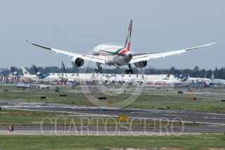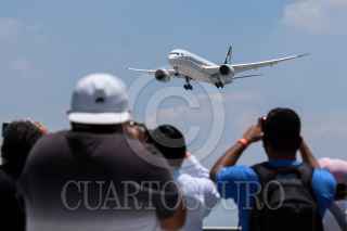 CIUDAD DE MÉXICO, 22JULIO2020.- Tras año y medio de permanecer estacionado en California, Estados Unidos. Arribó de nueva cuenta al Aeropuerto Internacional de la Ciudad de México (AICM) el ex avión presidencial. Según declaraciones gubernamentales ya se recibió un anticipo por la compra de la aeronave, el lunes el presidente Andrés Manuel López Obrador dará ofrecerá detalles en su conferencia matutina. FOTO: GALO CAÑAS /CUARTOSCURO.COM