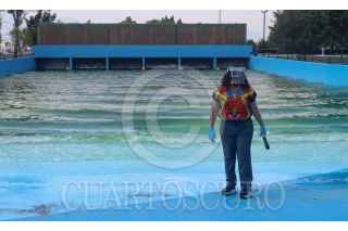 CIUDAD DE MÉXICO, 22JULIO2020.- Clara Brugada, alcaldesa de Iztapalapa, encabezó un recorrido por la "Utopía Ollini", que cuenta con alberca de olas, una albercas semi-olímpicas techada y otra al aire libre, lago artificial con cascada, unidades geodésicas, pista de tartán y una pista de hielo. Cada espacio se encuentra en el Parque, que mide 100 mil metros cuadrados. La alcaldesa informó que se estima que las instalacines puedan ocuparse cuando la capital se encuentre en Semáforo Verde.El acto se realizó en el Deportivo Francisco I. Madero, ubicado en Avenida Telecomunicaciones, Colonia Chinampac de Juárez. FOTO: GRACIELA LÓPEZ /CUARTOSCURO.COM
